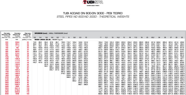 Steel pipes ND 600-ND 3000 - Theoretical weights